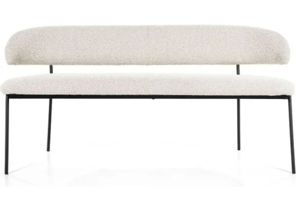 Eetkamerbank Luka beige 95795 van het merk Eleonora is beschikbaar in verschillende kleuren. Deze eetbank is bekleed met de polyester stof Copenhagen beige 901 en heeft metalen poten met een gecoaten afwerking. Deze eetkamerbank oogt ruimtelijk door de opening tussen de zitting en de rugleuning. De rugleuning loopt rond af langs de zijkanten.