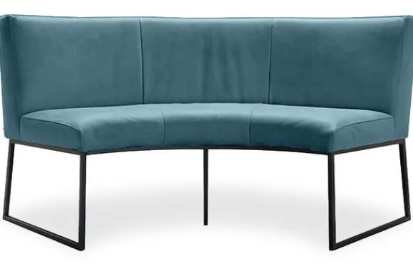 Eetkamerbank Amuse van het merk Divani is verkrijgbaar in alle kleuren en in materiaalsoorten zoals stof, velvet en rundleder. Je kan uit twee afmetingen kiezen en diverse pootmogelijkheden. Deze bank wordt standaard uitgevoerd met een zwarte metalen sledepoot. Je kunt ook kiezen voor RVS. De poot loopt door onder de zitting van de eetbank, verder loopt de middelste poot iets minder ver door naar voren dan de twee buitenste poten. Deze eetbank is afgewerkt met geknepen naden en een gladde rugleuning. De eetbank loopt in een ronde vorm, waardoor deze perfect aansluit bij een ronde eettafel. Kies voor een eetbank in ongeveer dezelfde breedtemaat als jouw eettafel.