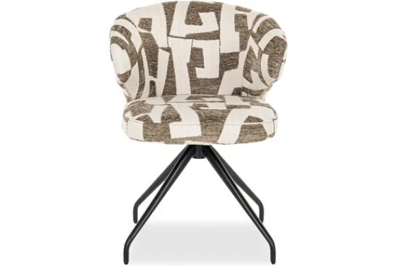 Eetkamerstoel Milly 213278 Moss Graffic van het merk Richmond Interiors is gestoffeerd met Moss Graffic wat de stoel meteen lekker opvallend maakt. De afgeronde rugleuning loopt langzaam over in armleuningen, hierdoor ervaar jij een comfortabele zit! De eetkamerstoel is voorzien van een zwart metalen spinpoot, deze is 180 graden draaibaar.