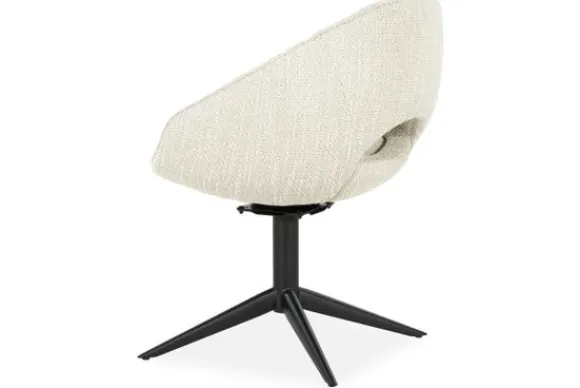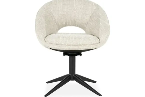 Eetkamerstoel Nol is 180 graden draaibaar. Dat maakt hem niet alleen praktisch aan de eettafel, maar ook ideaal voor dagelijks gebruik. De zwarte metalen poot geeft de stoel een strakke en stabiele basis.