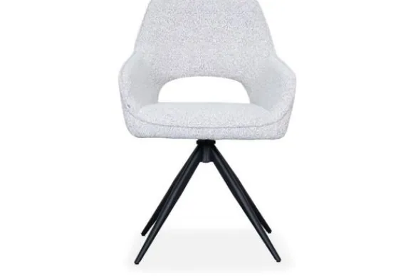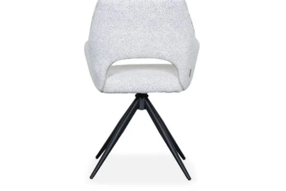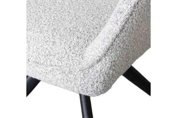 Eetkamerstoel Finley heeft niet alleen een fraai uiterlijk, maar is ook zeer functioneel. Dankzij de stevige, zwarte metalen poten met een unieke kruisvorm biedt de stoel stabiliteit en een moderne touch. De bouclé-stof is duurzaam en slijtvast, wat de stoel ideaal maakt voor dagelijks gebruik. Bovendien is de draaifunctie met auto-return een handige toevoeging, wat zorgt voor extra flexibiliteit en gemak tijdens het tafelen.