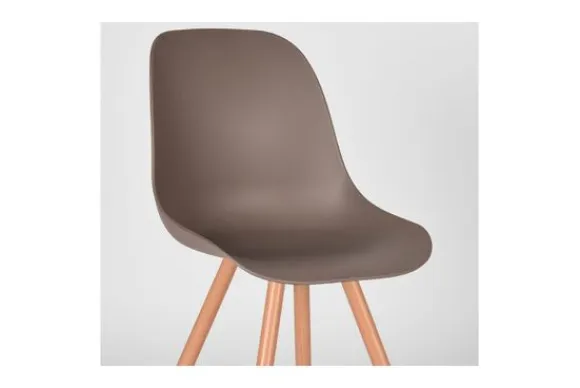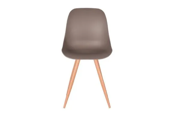 Eetkamerstoel Rimini, uitgevoerd in coffee polypropyleen heeft een zeer luxe en comfortabele kuip voorzien van elegante rondingen. Het materiaal is duurzaam en zeer gebruiksvriendelijk. Tevens is Rimini in het bezit van licht uitlopende metalen poten voorzien van een cover met houtstructuur waardoor de stoel stevig op de grond staat en ook nog eens een frisse, speelse touch krijgt.