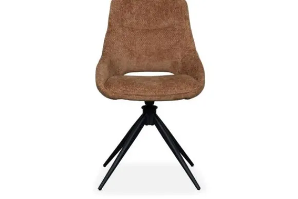 De gebogen rugleuning biedt goede ondersteuning tijdens lange diners. De brede zitting zit comfortabel en de draaifunctie met auto return maakt de stoel extra praktisch in gebruik. De slanke metalen poten zorgen voor stabiliteit en geven de stoel een moderne, luchtige uitstraling.