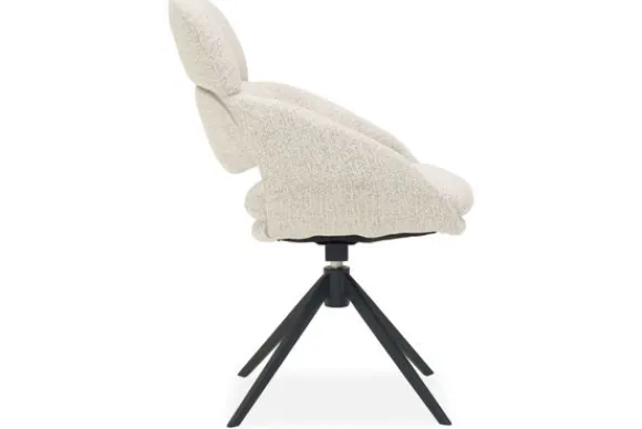 De zwarte, slanke poten in spinvorm geven de stoel een moderne en speelse elegantie. Dankzij het 360 graden draaimechanisme met autoreturn, waarbij de stoel automatisch terugdraait naar de oorspronkelijke stand, ervaar je gebruiksgemak zonder concessies aan luxe. Perfect voor in een Scandinavisch, Japandi of modern interieur.