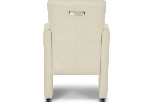 Deze eetstoel combineert stevigheid met een uitnodigende zit. De armleuningen bieden extra ondersteuning, terwijl de licht gebogen rugleuning een ontspannen zithouding stimuleert.