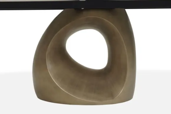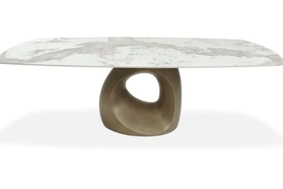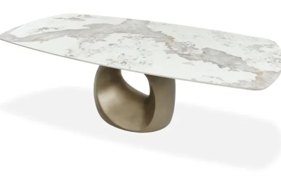 Eettafel Castello van het merk Tower Living is een luxe statement piece met een deens ovale marmerlook blad en een sculpturaal metalen onderstel in warme bronskleur. Deze combinatie van hoogwaardige materialen en unieke vormgeving maakt de tafel een stijlvolle blikvanger in elke eetkamer.