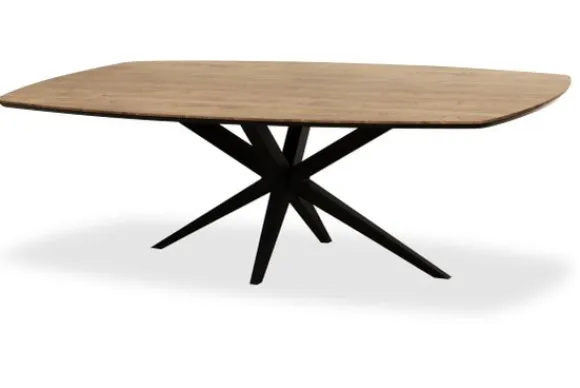 Eettafel Levin van het merk Lamulux, hier afgebeeld in de kleur mango, is beschikbaar in diverse afmetingen en kleuren. De tafel is voorzien van een zwart metalen onderstel. De tafel heeft een deens ovale vorm met een tapse rand.