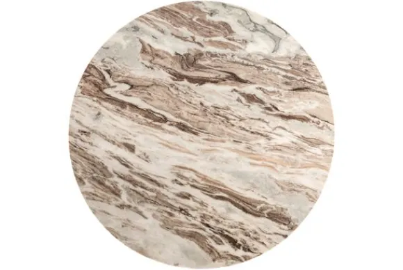 Het marmeren blad straalt een stijlvolle luxe uit, met zijn zachte aders en unieke patroonvariaties. Geen twee bladen zijn exact hetzelfde, een waar natuurproduct dat een verfijnde dialoog tussen licht en textuur op tafel brengt. De zachte kleurschakeringen in het marmer vangen het licht op een manier die elke ruimte subtiel doet oplichten.
