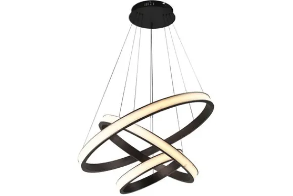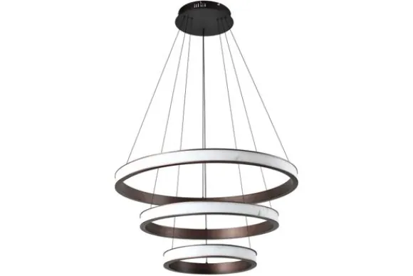 Hanglamp Aurevia 214475 van het merk Richmond Interiors is een moderne blikvanger met een sculpturaal ontwerp. De drie ringen van kunsthars, dat het uiterlijk heeft van albast, verspreiden een zacht en warm licht.