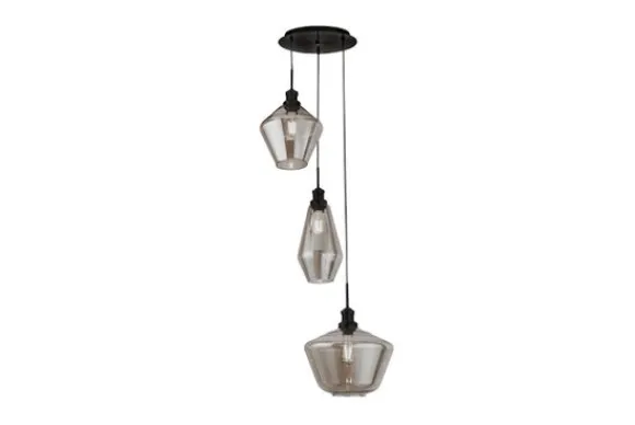 Hanglamp Mia 5423-3BK van het merk Searchlight is een moderne lamp met drie glazen kappen die op verschillende hoogtes hangen Dit geeft de lamp een speels en modern uiterlijk. Dankzij de E27 fitting in de lamp kan je zelf uitzoeken wat voor licht je wilt. Deze fitting heeft een maximale wattage van 60W.