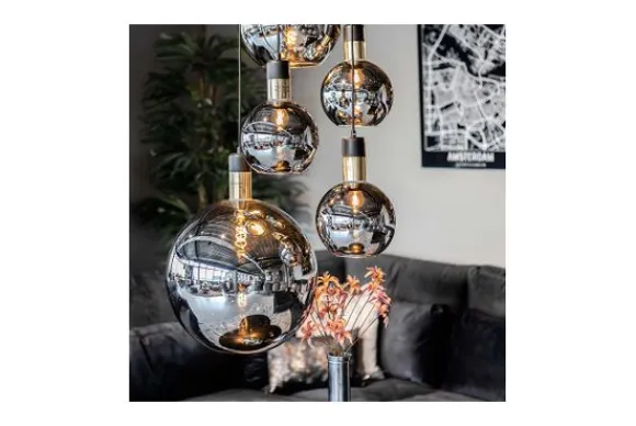 Hanglamp Julius van het merk Lucide bestaat uit vijf lichtbronnen, één lichtbron heeft een diameter van 40 cm, er is één lichtbron met een diameter van 30 cm en nog drie lichtbronnen met een diameter van 20 cm. Het fumé glas hult je vintage hanglamp in mysterie, als mist in de bergen bij het aanbreken van de dag. Julius combineert verduisterd en verlicht glas tot een boeiende dialoog tussen schijnbaar aparte volumes. De lichtbron, beperkt zichtbaar door de glazen lampenkap, bevindt zich in de kern en verspreidt het licht naar beneden. Julius schijnt op de hoogte die je zelf instelt. Kies een filamentlamp voor het meest betoverende effect.
