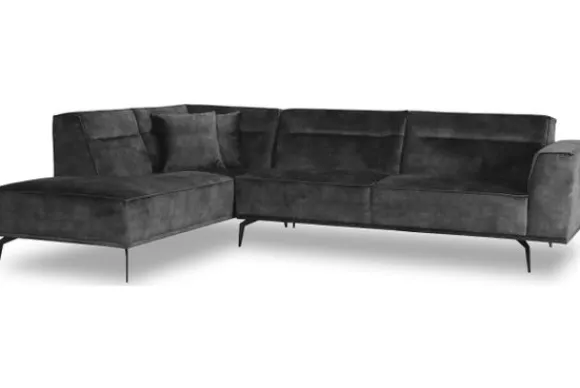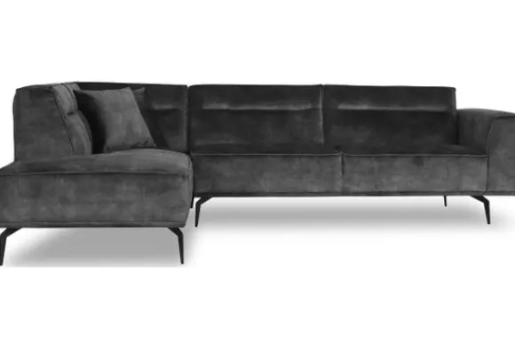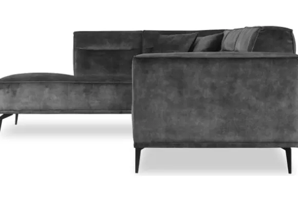Hoekbank Iris van het merk Design Italia is beschikbaar in alle kleuren en in verschillende materiaalsoorten zoals stof, velvet en rundleder. Je kunt kiezen uit diverse afmetingen. Ook kun je kiezen voor een gladde rugleuning of intrekkiningen in de rug en voor een geknepen naad of een dichte naad. Dit is een strakke bank door de rechte, vaste kussens. De bank staat op metalen knikpoten waardoor het een luchtige uitstraling heeft.