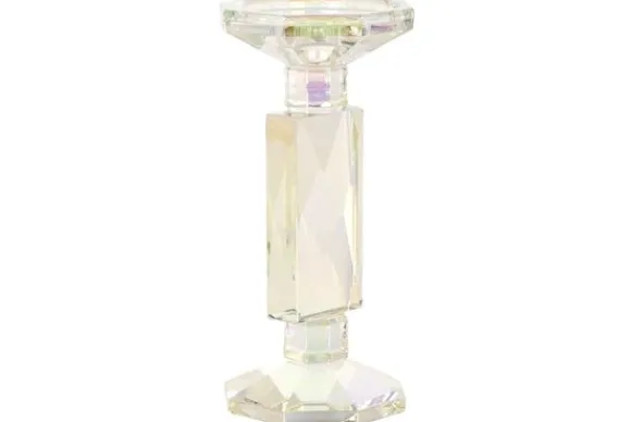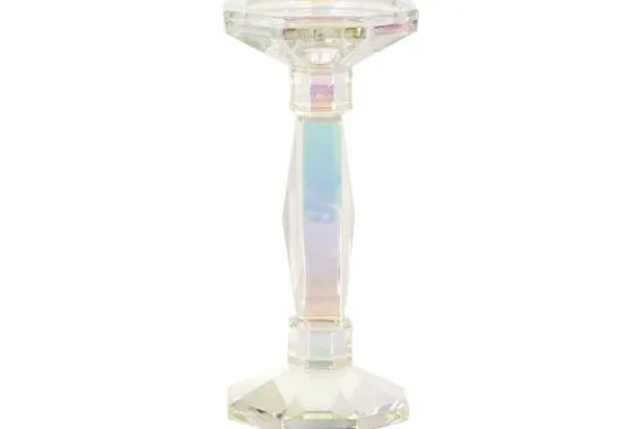 Kandelaar Rainbow 212044 klein van het merk Richmond Interiors is gemaakt van kristalglas. Door de juiste lichtinval veranderen de kleuren, waardoor deze kandelaar een echte eyecatcher is. De kandelaar is geschikt voor dinerkaarsen. Tip: de kandelaar is ook perfect te combineren met de grotere variant