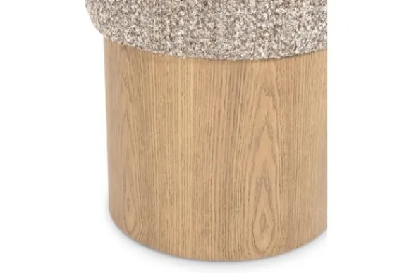 Poef George taupe 96441 van het merk Eleonora is een compacte poef met een warme en robuuste uitstraling. De ronde houten basis vormt een stevig geheel en laat de natuurlijke houtnerf mooi uitkomen. De zachte zitting in bruin bouclé voegt comfort en sfeer toe, waardoor de poef zowel praktisch als stijlvol is.