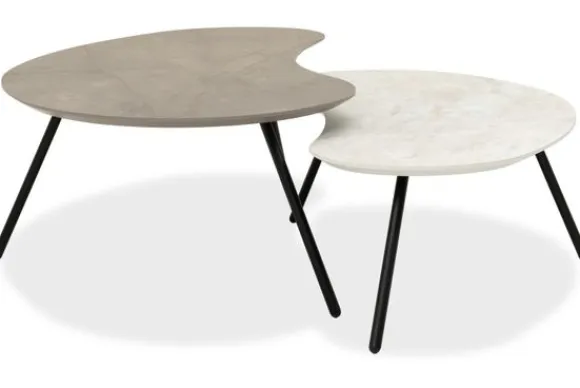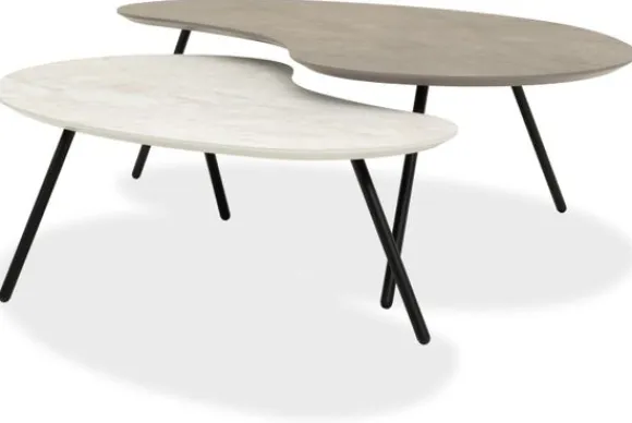 Salontafelset Solveta van het merk Casa Varello bestaat uit twee salontafels met de volgende afmetingen: B100 x D55 x H31 cm en B120 x D63 x H36 cm.