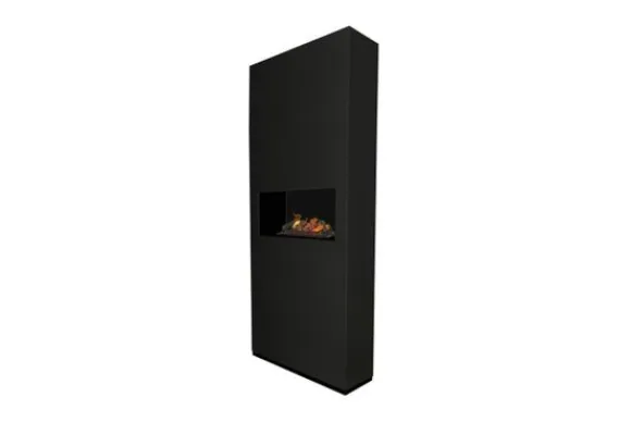 Waterdamphaard Ambiance van het merk Xaralyn is een moderne haard met een strakke vormgeving. De hoge schouw is gemaakt van MDF en in de kleur RAL 9005. De hoge schouw biedt een moderne aanblik en kan worden gebruikt zonder rookkanaal. Deze versie van de Ambiance haard is voorzien van een Opti-Myst Cassette 600 elektrische inbouwhaard. De hoogte van deze inbouwhaard is zelf te bepalen, doormiddel van de blokken. Wanneer je één blok onderin plaatst wordt de inzethaard zoals afbeelding één. Wanneer je twee blokken onderin plaatst wordt de inzethaard zoals afbeelding twee.