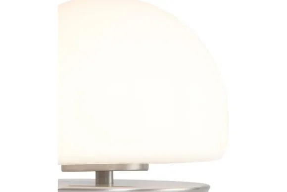 Door de touch dimmer en het compacte formaat is tafellamp Ancilla ideaal als bedlamp. Het spel tussen wit glas en de zilverkleurige voet voegt een modern en elegant accent toe aan uw interieur.