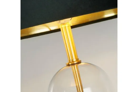 Tafellamp Oxford EU81712GR van het merk Searchlight is een luxueuze lamp met een gouden metalen voetstuk dat in een glazen stolp zit. De lampenkap is van groen velvet, de binnenkant is goud gekleurd voor een elegant effect.