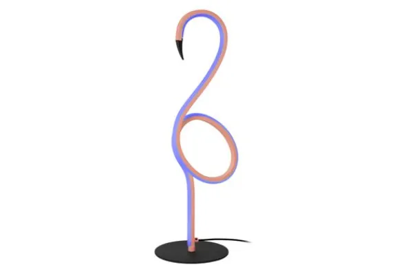 Tafellamp Flamingo van het merk Lucide is een speelse staande lamp die ongetwijfeld een brede glimlach op het gezicht van je bezoekers geeft. De tafellamp is uitgerust met een RBG-LEDstrip waardoor de lamp van kleur veranderd. Ga dus voor extra veel sfeer door uitbundig te variëren in kleur. De RGB-ledstrip regel je gemakkelijk met de afstandsbediening. Met een hoogte van 49.5 centimeter leeft de tafellamp het donkerste hoekje van je kamer, kast of bureau op.