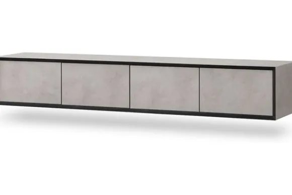 Tv-meubel Compose van het merk Ideco is direct uit voorraad leverbaar in het materiaal HPL Pebble Stone, uitgerust met 4 deuren. Deze hangende tv-meubel is een moderne blikvanger die luxe en verfijning uitstraalt. De combinatie van een lichte steenachtige afwerking met een strak zwart metalen frame geeft het meubel een stijlvolle, minimalistische uitstraling.