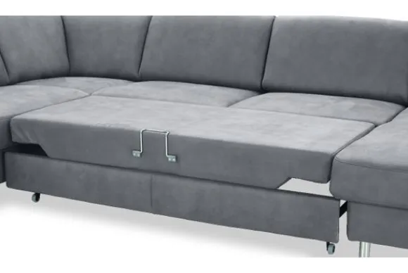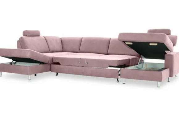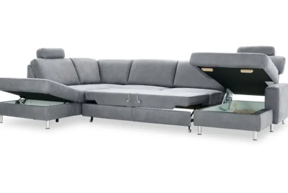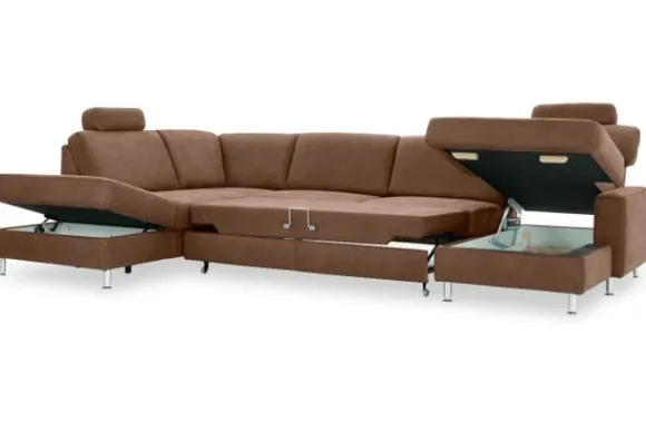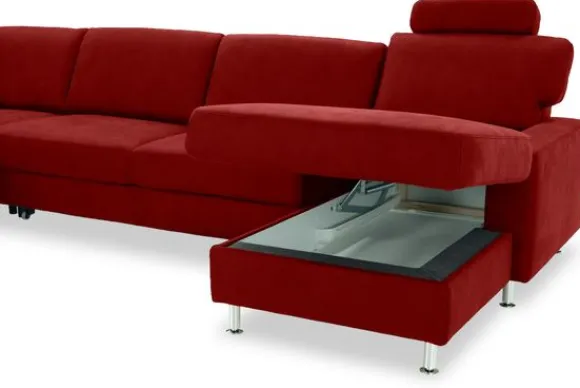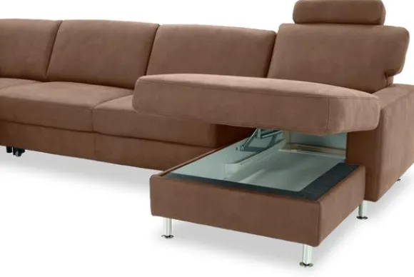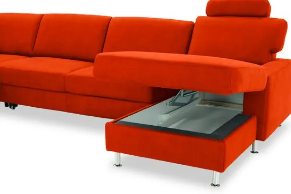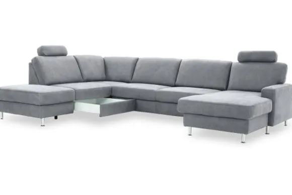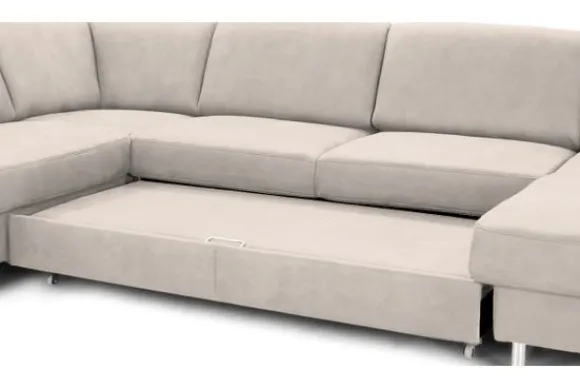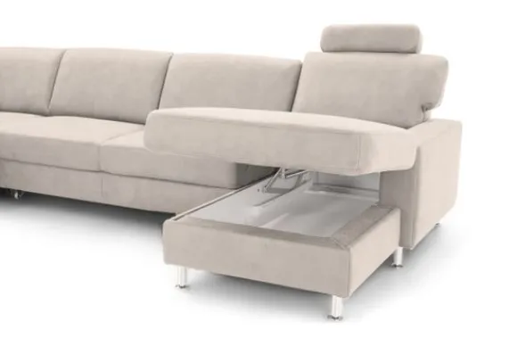 De Bayonne is uniek door de vele opties waarover deze bank beschikt. Zo kan er niet alleen gekozen worden voor sierkussens en armleuning kussens, er kan ook gekozen worden voor hoofdsteunen. Een elektrisch relaxsysteem in de longchair is ook mogelijk. In de twee middelste zittingen kan een slaapfunctie of uitschuifbare zitting ingebouwd worden, deze zijn eenvoudig uit te klappen. Zo onstaat er binnen no time een bed! Om dit bankstel nog handiger te maken kan er ook gekozen worden voor een opklapbare lounge. Als je deze opklapt zit er een super handig opbergvak onder! Deze bank komt standaard met rond aluminium poten, je kunt ook voor andere poten kiezen.