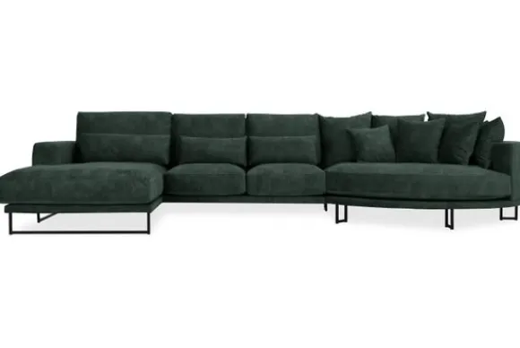 Hoekbank Dordoni II van het merk Be Inspired is verkrijgbaar in alle kleuren en in materiaalsoorten zoals ribstof, teddy en velvet. Je kunt kiezen uit diverse afmetingen. De Dordoni II bank wordt standaard uitgevoerd met alle sierkussens en lendekussens die ook op de foto te zien zijn. Je kunt dus lekker wegkruipen tussen alle sierkussens. De rugkussens daarachter zijn lekker hoog, deze combinatie zorgt voor een goede ondersteuning van de rug. Alle rugkussens zitten los en zijn omkeerbaar, de zitkussens zitten vast met klittenband. Deze bank oogt ruimtelijk door de hoge metalen sledepoten.