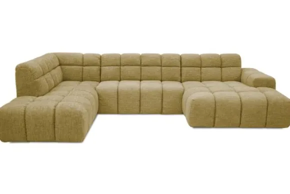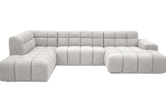 Je kunt kiezen uit verschillende materialen, waaronder stoffen als velvet en boucle. Daarnaast is de bank verkrijgbaar in uiteenlopende kleuren.
