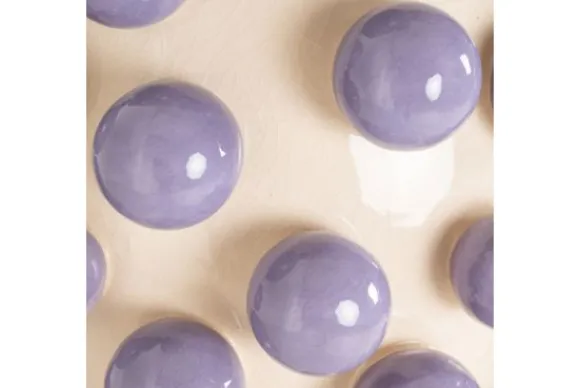 Het ronde patroon van de stippen zorgt voor een verrassende textuur die direct in het oog springt.