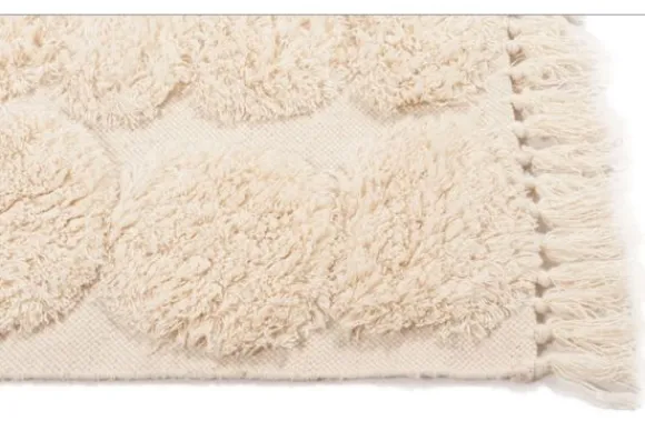 Het kleed is gemaakt van wol, een materiaal dat bekendstaat om zijn vuilafstotende en isolerende eigenschappen. Het voelt warm aan, dempt geluid en blijft lang mooi, ook bij dagelijks gebruik.