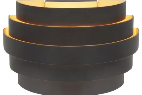 Wandlamp Scudo W3640.01 van het merk Highlight heeft een strakke, sierlijke uitstraling De binnenzijde van de wandlamp heeft een gouden kleur. Het licht verspreidt zich door de boven- en onderkant en de ringen van de lamp, hierdoor ontstaat er een mooie lichtverspreiding. De lamp is voorzien van een G9 fitting met een maximale wattage van 33 Watt. Tevens is de lamp dimbaar middels een externe dimmer, welke niet wordt meegeleverd. Deze wandlamp heeft een kabel, deze kabel kan je aansluiten aan de elektriciteit of je kan er zelf een stekker aan monteren.