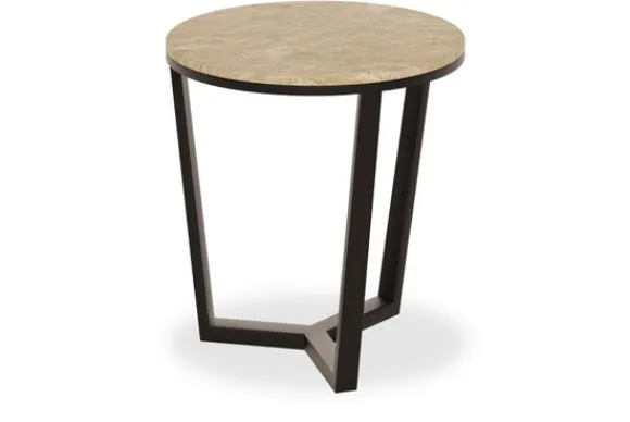 Salontafel Sian van het merk BL Design is een ronde salontafel met een diameter van 50 cm en een hoogte van 36 cm. Deze uitvoering is voorzien van een marmeren tafelblad in de kleur Breccia Sarda en poten in de kleur bruin.