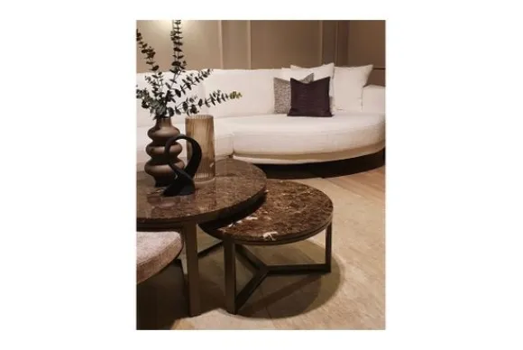 Marmer is een duurzame steensoort en heeft een luxe en stijlvolle uitstraling. Deze tafels zijn hier uitgevoerd met een marmer blad in de kleur emperador brown en poten in de kleur bruin. De productie van marmer verloopt als volgt: uit één grote marmeren plaat worden meerdere bladen gesneden, de patronen (aders) en kleur zijn niet overal hetzelfde. Dit zorgt ervoor dat elk blad een verschillende tekening en kleur heeft, dit maakt elk blad uniek en verschillend.