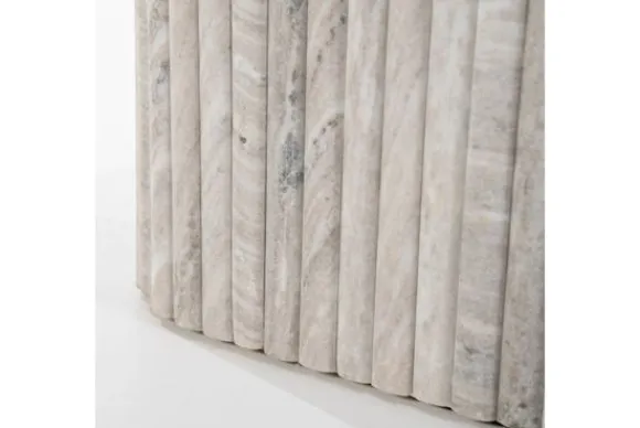 Salontafel Dorique 240210 van het merk By-Boo is gemaakt van marmer en heeft afgeronde hoeken. Marmer is een duurzame steensoort en heeft een luxe en stijlvolle uitstraling. De steensoort is een natuurproduct en kenmerkt zich door de unieke afwerkingen en kan zowel grove als gladde delen bevatten. Door de kenmerkende kleurschakeringen en aders is geen product hetzelfde. Zo haal je met een marmer product dus echt iets unieks in huis. Naast deze salontafel is de Dorique ook verkrijgbaar als een bijpassende bijzettafel.