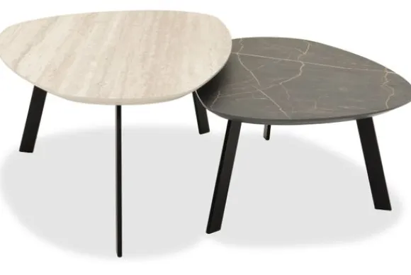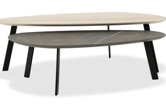 Salontafelset Simeta van het merk Casa Varello bevat 2 tafels met de afmetingen B100 x D55 x H30,5 en B120 x D63 x H36 cm. De houten en marmeren kleuren combineren perfect met verschillende materialen en passen goed bij Japandi of Scandinavische interieurs.