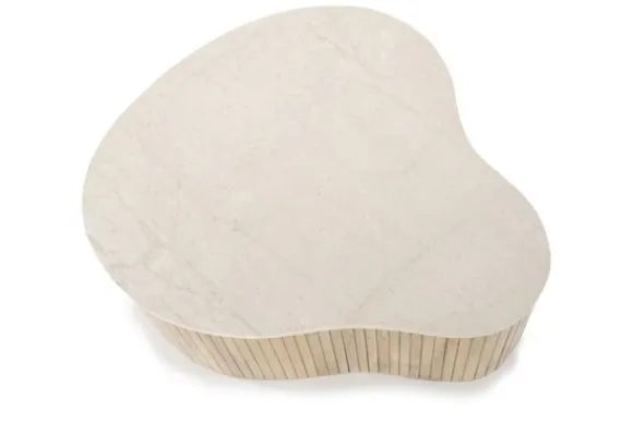 Salontafel Kira 96188, van het merk Eleonora, combineert natuurlijke materialen en organische vormen tot een unieke tafel. Het tafelblad is vervaardigd uit hoogwaardig marmer, wat niet alleen duurzaamheid en luxe uitstraalt, maar ook zorgt voor een elegant en tijdloos design. Het blad heeft een zachte, golvende vorm die een artistiek element toevoegt aan het interieur.