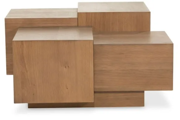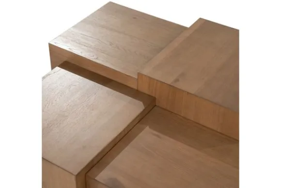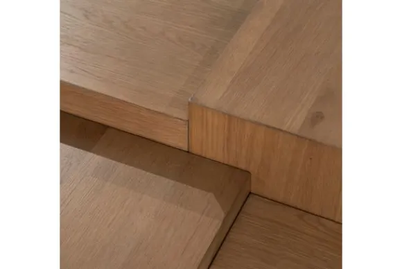 Salontafel Quinten 96387 bruin van het merk Eleonora is een sculpturale blikvanger die functionaliteit en hedendaags design perfect weet te combineren. Uitgevoerd in eiken fineer, straalt deze tafel een natuurlijke warmte uit, terwijl het speelse lijnenspel zorgt voor een verrassende visuele gelaagdheid. De kubistische vormgeving zijn opgebouwd uit verschillende niveaus. Elk vlak vangt het licht op een unieke manier, wat zorgt voor een subtiele dialoog tussen schaduw en structuur.