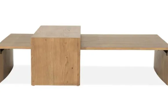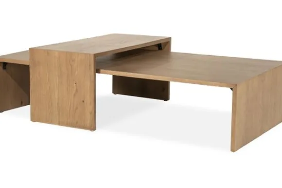 De tafels zijn vervaardigd van eikenhout fineer en hebben een warme, natuurlijke tint die zorgt voor een rustige uitstraling in de woonkamer. De tafels kunnen samen gebruikt worden voor een speels geheel of afzonderlijk worden geplaatst voor extra flexibiliteit.