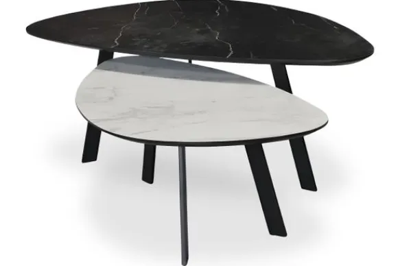 Salontafelset Bogota van het merk Every Table is een unieke tafel met een klassieke uitstraling met een kiezel vormig blad. Het blad van de tafel is gemaakt van HPL (geperst hout) met een bovenlaag van houtstructuur, marmerstructuur of een ander materiaalstructuur. Deze bovenlaag is ijzersterk en zorgt ervoor dat het blad kras-, slijt en stootvast is. Daarnaast is het eenvoudig te onderhouden.