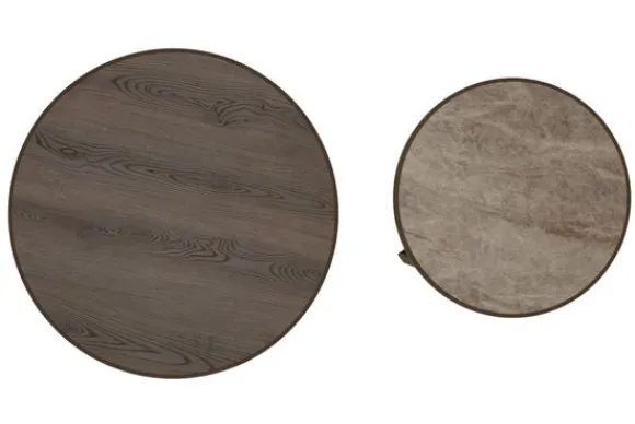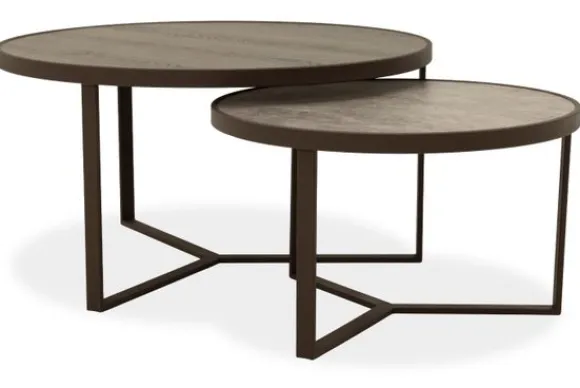 Salontafelset Merville van het merk Ideco is een stijlvol duo en bestaat uit een tafel van Ø80 x H42 cm en een kleinere tafel van Ø60 x H35 cm. De ronde bladen zorgen voor een zachte vorm, terwijl het metalen onderstel juist strak en krachtig oogt.