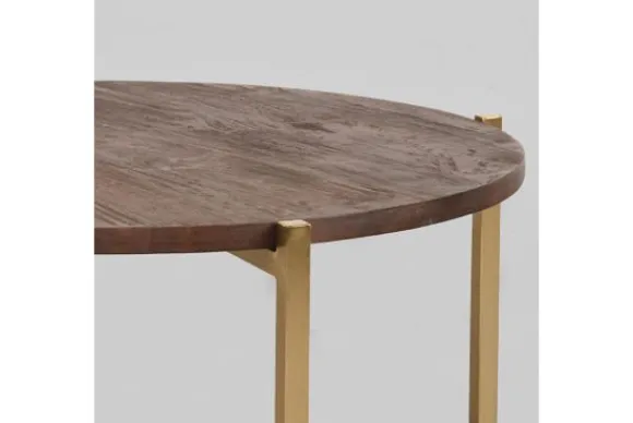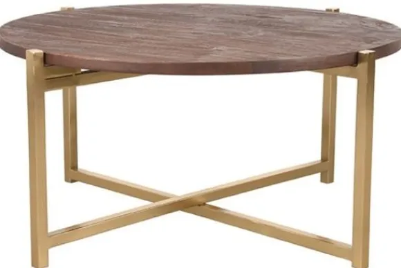 Salontafel Dox PO-64.012 van het merk LABEL51 is een sfeervolle salontafel met een licht gezandstraald mangohouten rond blad in espresso kleur. Het onderstel in met kruispoot is van chique goud metaal. Mangohout kun je herkennen aan de vele kleurschakeringen en ongelijkheden in het oppervlakte van het hout, waardoor geen enkel meubelstuk hetzelfde is. De kleuren in mangohout kunnen variëren van licht- tot donkerbruine tonen. Mangohout is een duurzame houtsoort.