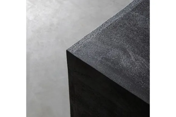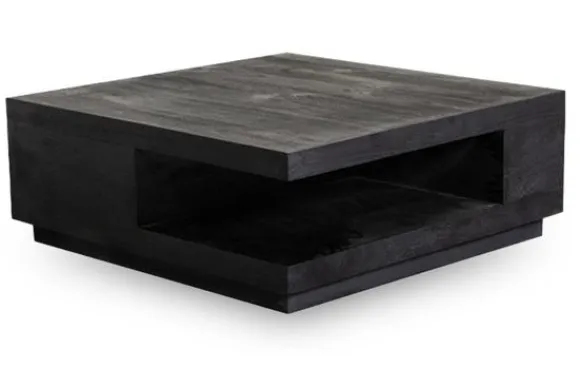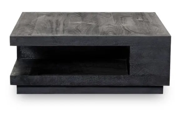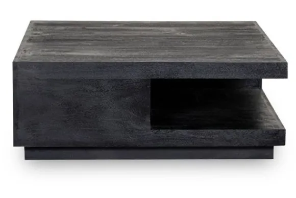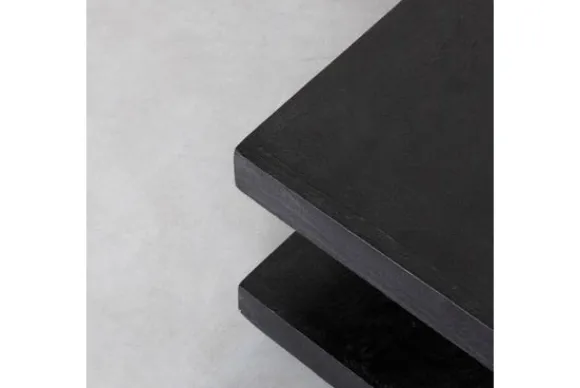 Salontafel Square heeft een vierkantgevormde basis, gemaakt van gezandstraald mangohout in de kleur Zwart. Deze robuuste basis heeft een prachtige geïntegreerde vakkenindeling die ervoor zorgt dat Square wel een heel leuk uiterlijk krijgt. Daarnaast zorgt de indeling dat spullen niet direct in het zicht liggen, maar je deze wel lekker bij de hand hebt. De vakkenindeling is aan beide zijden, in tegengestelde positie geplaatst waardoor het meubel er aan alle zijden speels en gaaf uitziet.