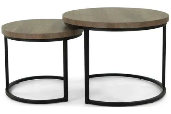 De grotere set bestaat uit twee ovale tafels van B86 x D67 x H50 cm en B71 x D52 x H43 cm.