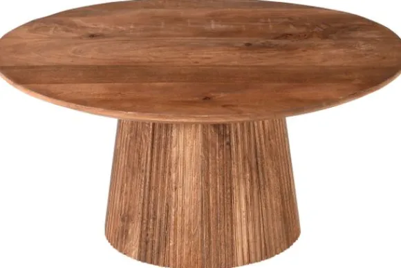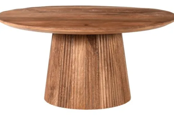 Salontafel Salvator van het merk Livingfurn is een moderne, ronde tafel. De tafel heeft een unieke poot, deze middenpoot is ontworpen met allemaal verticale latjes mangohout. Dit geeft de tafel een prachtige uitstraling. Mangohout kun je herkennen aan de vele kleurschakeringen en ongelijkheden in het oppervlakte van het hout, waardoor geen enkel meubelstuk hetzelfde is. De kleuren in mangohout kunnen variëren van licht- tot donkerbruine tonen, met soms een rode gloed of juist een gelige ondertoon. Mangohout is een duurzame houtsoort. Deze tafel wordt geleverd in de kleur bruin, maar is ook verkrijgbaar in de kleur .