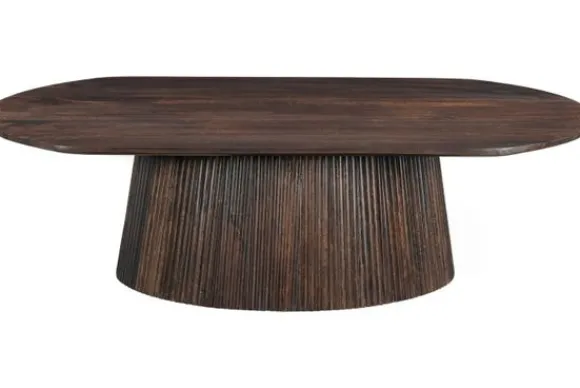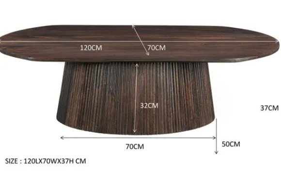 Salontafel Salvator van het merk Livingfurn is een moderne, ovale tafel. De tafel heeft een unieke poot, deze middenpoot is ontworpen met allemaal verticale latjes mangohout. Dit geeft de tafel een prachtige uitstraling. Mangohout kun je herkennen aan de vele kleurschakeringen en ongelijkheden in het oppervlakte van het hout, waardoor geen enkel meubelstuk hetzelfde is. De kleuren in mangohout kunnen variëren van licht- tot donkerbruine tonen, met soms een rode gloed of juist een gelige ondertoon. Mangohout is een duurzame houtsoort. Deze tafel wordt geleverd in de kleur walnoot, maar is ook verkrijgbaar in de kleur .