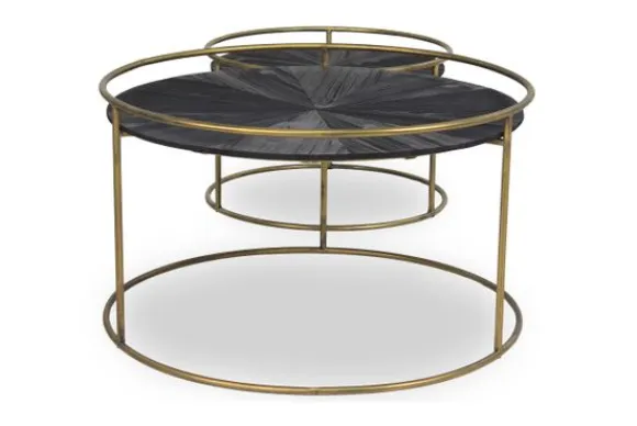 Salontafelset Caly Black wood 706936 van het merk PTMD is een set van twee tafels met een bijzonder mooi design. Het tafelblad is vervaardigd van MDF dat is afgewerkt met zwart Firwood. In combinatie met het goudkleurige frame hebben de tafels een chique uitstraling. De afmetingen van de salontafels zijn: B55 x D55 x H35 cm en B76 x D76 x H43 cm.