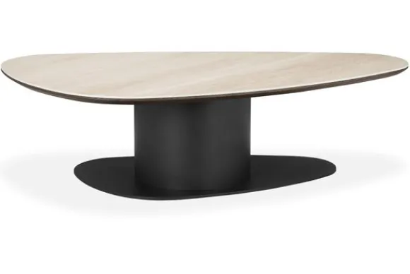 Salontafel Ritz 213123 van het merk Richmond Interiors is een stijlvolle combinatie van eiken fineer en keramiek met travertinlook. Het eiken fineer, gemaakt van zorgvuldig gesneden houtlagen, toont een natuurlijke nerfstructuur en biedt een duurzaam alternatief met minimaal materiaalverlies.