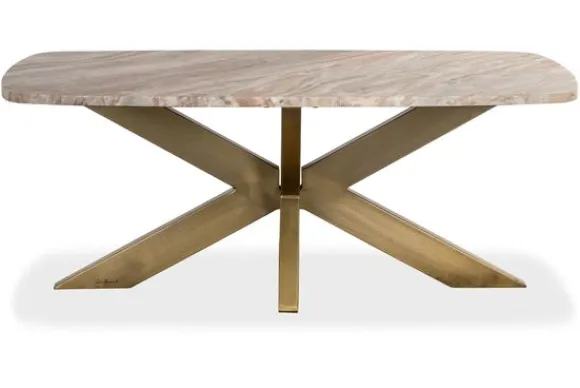 De spinpoot in warm geborsteld goud geven de tafel een krachtig maar elegant silhouet. Deze salontafel voelt zich thuis in een hotel chic of modern interieur, waar stijl en sfeer samenkomen.
