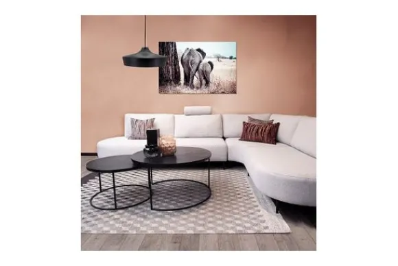 Salontafelset Bolder 210499 van het merk Richmond Interiors heeft een zwart ijzeren onderstel met een aluminium blad. Dit zijn erg sterke materialen waardoor de tafel lang mee zou gaan. De tafel heeft zijn moderne en strakke uitstraling te danken aan het dunne frame en volledige zwarte look. De grotere tafel heeft een inkeping in de poot waardoor de kleinere eronder geschoven kan worden. Dit zorgt er ook voor dat de tafels makkelijk te verschuiven zijn, zo kan je er bijvoorbeeld een gebruiken als bijzettafel.