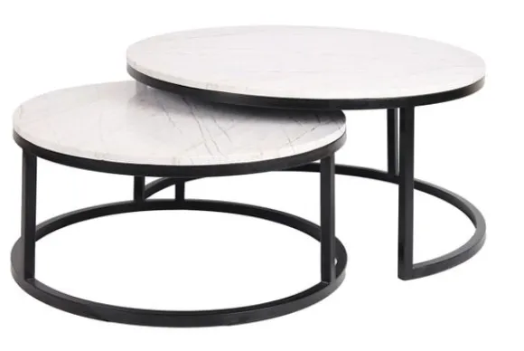 Bijzettafelset Lexington 210545 is van het merk Richmond Interiors. Het blad van de tafels is gemaakt van Carrara marmer, dit marmer soort kenmerkt zich aan de heldere witte kleur en de grijze aderen die dwars over het blad lopen. Een mooie manier om natuursteen in huis te halen! De poten van de tafels zijn gemaakt van ijzer, dit zorgt ervoor dat de tafels niet alleen mooi, maar ook sterk zijn.