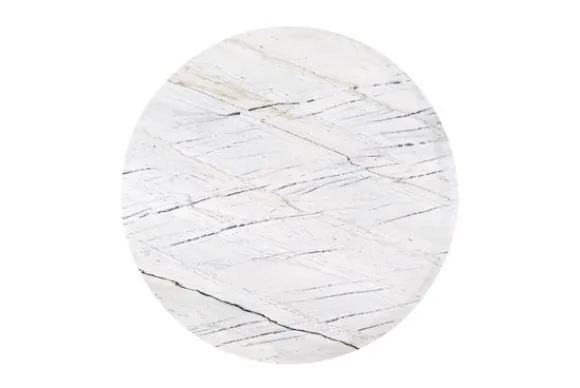 De hogere tafel heeft een diameter van 91.5 cm en is 46 cm hoog, de andere heeft een diameter van 76 cm en is 36 cm hoog. Let op: Marmer is een natuursteen, daardoor kan de print van het blad iets afwijken van de foto.
